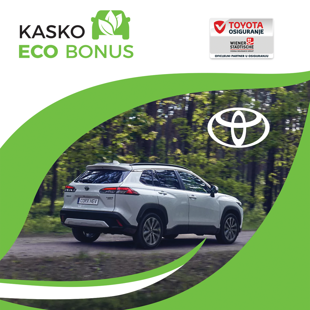 Ove godine smo pripremili i dodatnu pogodnost u okviru našeg Toyota kasko osiguranja – Kasko ECO bonus – popust na premiju osiguranja prilikom obnove kasko polise. Visina popusta zavisi  od učestalosti korišćenja čistog električnog (EV) pogona. Veće učešće vožnje na čisti električni pogon kao i veći broj pređenih kilometara na ovaj pogon – ostvaruje se veći popust na premiju osiguranja.